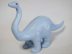 ![]() 恐竜貯金箱(草食恐竜編)。 胴体部分が貯金箱になっています。ほとんど自分で形を作らなくてはいけないので、ちょっと難しい。高学年向けです。 | ![]() どうぶつ貯金箱。お菓子っぽい感じにして女の子向けに。 |